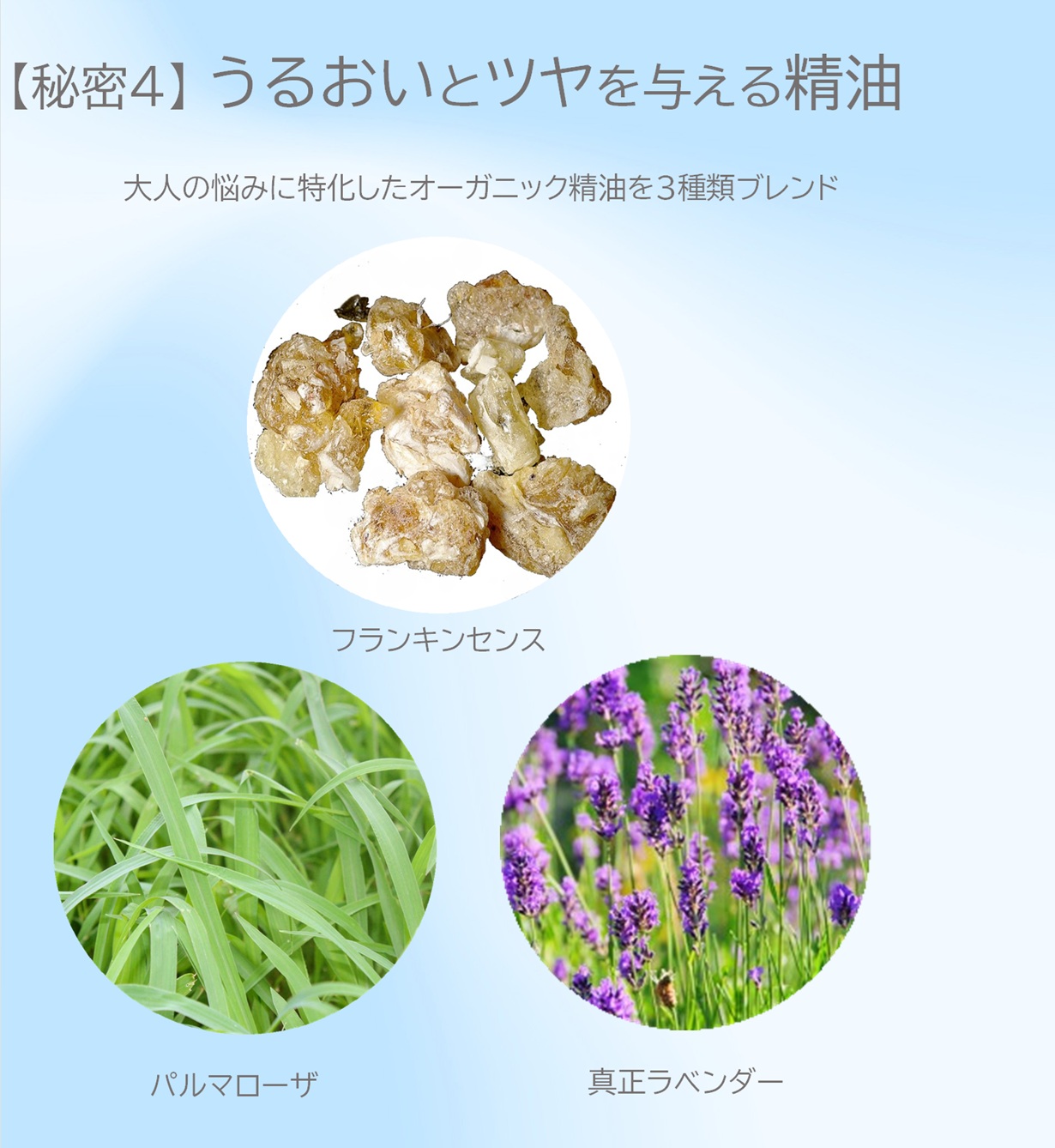 【全成分】アルガニアスピノサ核油*、キャンデリラロウ、プリンセピアウチリス種子油*、フラーレン、スクワラン、トルマリン、流紋岩末、パルマローザ油*、ニュウコウジュ油*、ラベンダー油*、トコフェロール (*印 オーガニック認定成分)