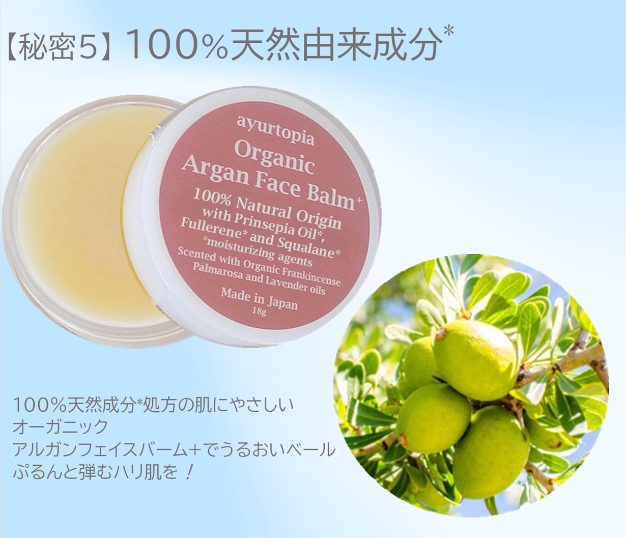 オーガニック アルガンフェイスバーム+ 18g (約1か月分)スパチュラ付き